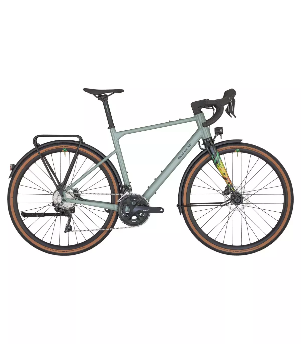 | Accessoires intégrés | Garde-boue : BGM Allroad fender, 50 mm // Porte-bagages : Racktime / BGM Allroad porte-bagages, SnapIt 2.0 System // Eclairage avant : Herrmans H-Black MR8, 180 Lumen, lampe de poche // Eclairage arrière : Herrmans H-Trace Mini, LED, lampe de poche |